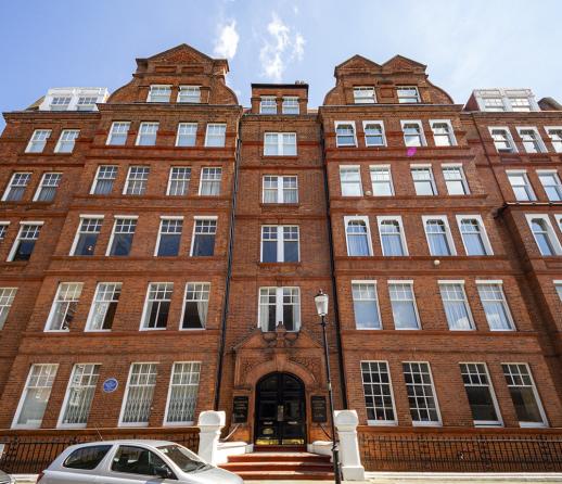 Previously lived in by T.S. Eliot, this building is a beautiful block of apartments just steps away from greenery.